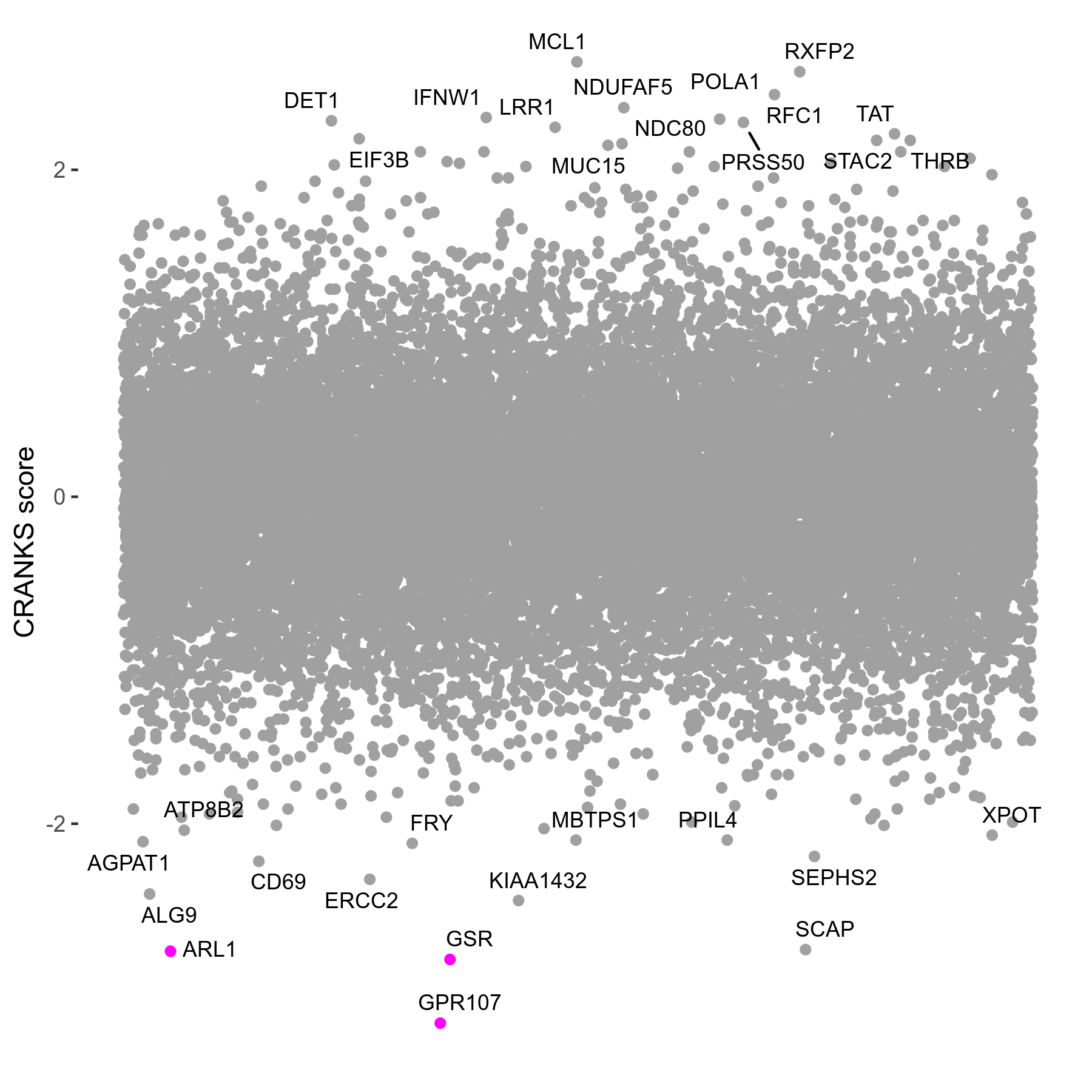 | Sensitive/Resistant hits (FDR<0.05) | CRANKS | Score Plot | Top 30 Genes | Screen Similarity | Top 30 Sensitive GO terms | Top 30 Resistant GO terms |
