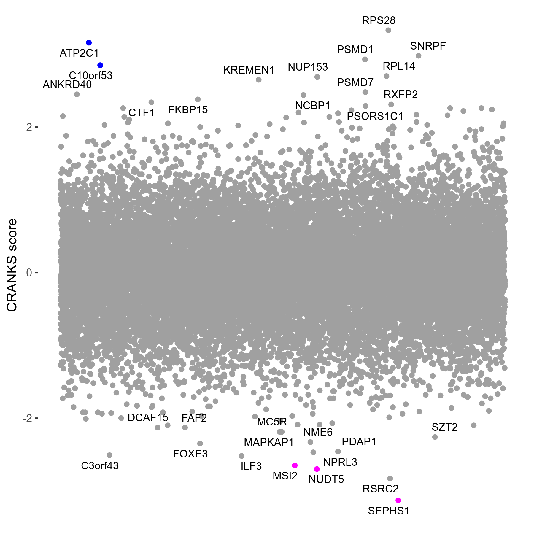 | Sensitive/Resistant hits (FDR<0.05) | CRANKS | Score Plot | Top 30 Genes | Screen Similarity | Top 30 Sensitive GO terms | Top 30 Resistant GO terms |